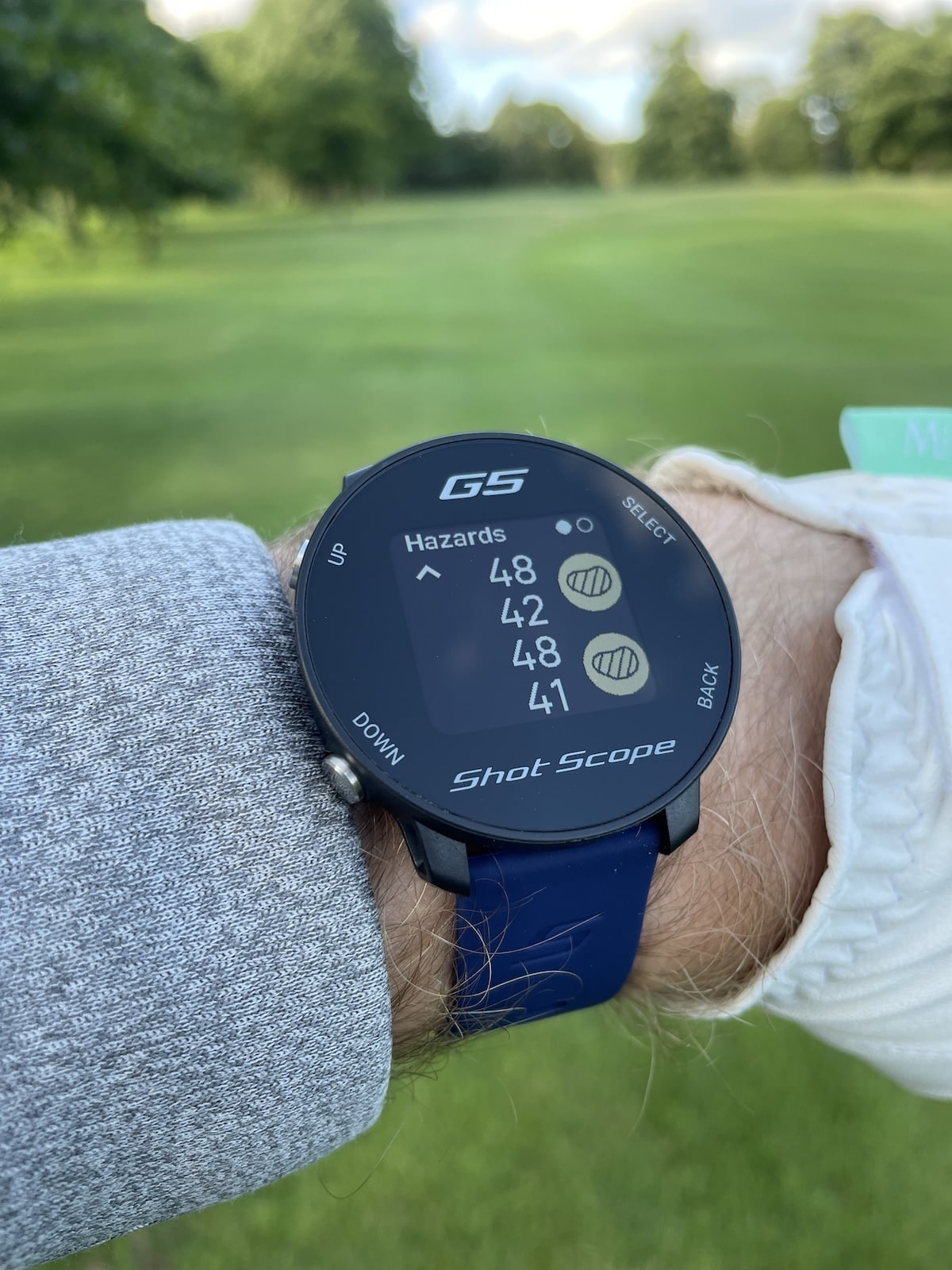Given it’s cheaper price point, the G5 wasn’t designed to be an all-singing, all-dancing golf watch, nor was it released to compete with Shot Scope’s premium X5 model. Instead, it was primarily designed for golfers looking for a basic and affordable option. With the G5, you’re not going to get a fancy touch screen, performance tracking, or an visual of the hole you are playing, but that’s to be expected at just over £100. The display is a little rudimentary and navigation is done using the four buttons on the outside of the casing. Whist some users may find this a little dated, the use of physical buttons actually helps to make the device incredibly quick and easy to navigate, and useable in wet weather conditions, where some touch-screen devices can struggle.